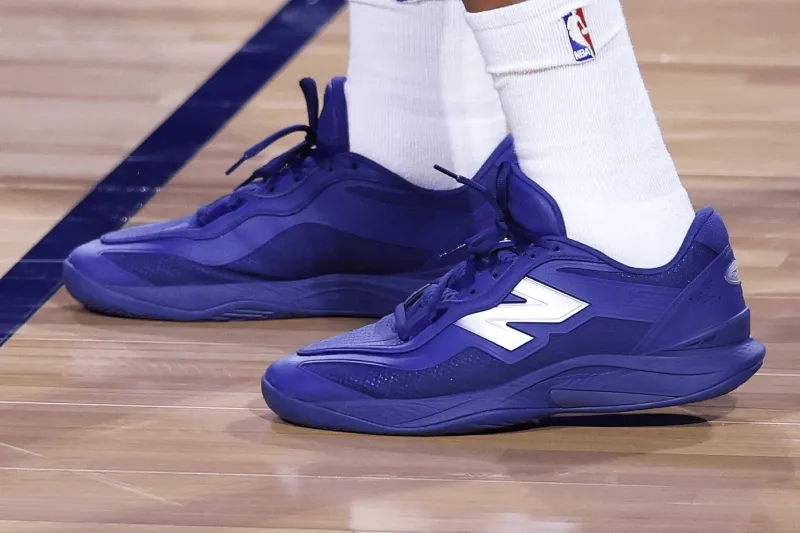 比赛中,伦纳德上脚New Balance Kawhi5。